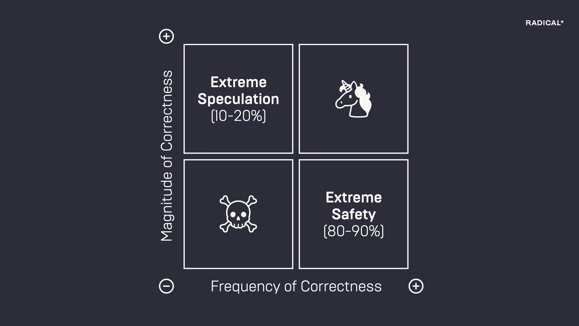 This, of course, is illusory and wishful thinking (as much as actual unicorns are a fantasy). By definition, you will suffer countless false starts, wrong turns, and dead ends when you aim for “extreme speculation.” This requires you to not only mentally but practically treat these projects radically differently from initiatives in your core (the haven of “extreme safety”) – something many companies fail to do. Projects in the “extreme speculation” category are frequently over-resourced, over-staffed, over-engineered, suffer from premature optimization, aren’t killed quickly enough, and learnings aren’t extracted properly. The KPIs are all wrong, expectations are messed up, the wrong type of people are responsible… The list goes on and on (and warrants another post – or maybe we write a book about how to design and lead antifragile organizations).